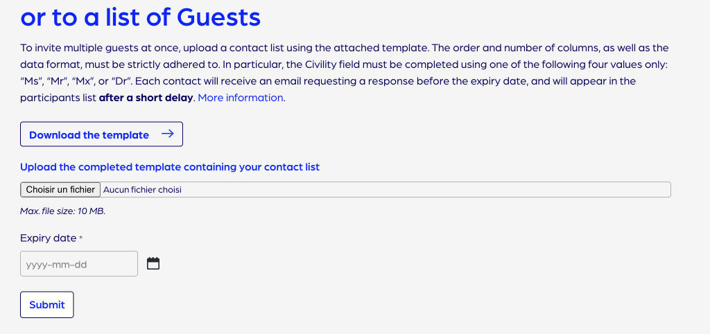 The Send a RSVP Invitation feature allows you to invite one or more participants to respond to an event invitation. A guest’s registration becomes final only if they accept the invitation before the specified deadline.